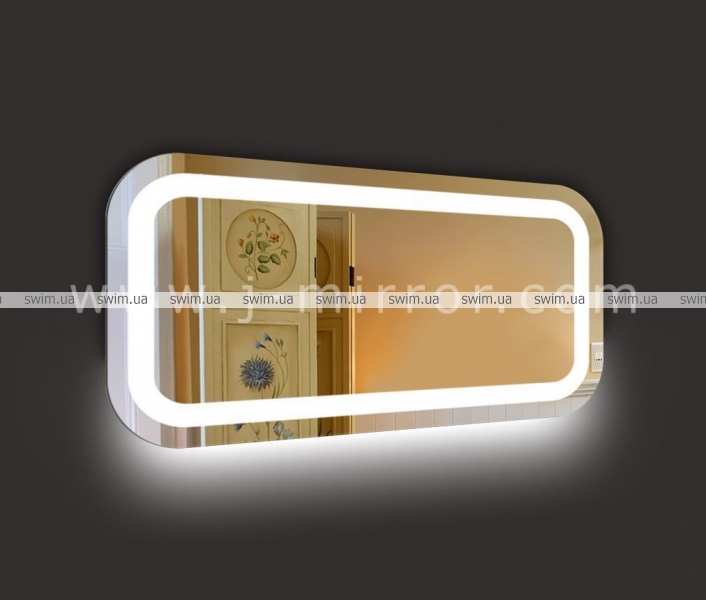 Зеркало Loretta с LED подсветкой и дополнительной нижней контурной подсветкой. Световая полоса по периметру зеркала равномерно и ярко светится.
