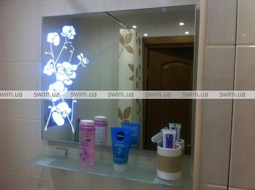Зеркало со светодиодной подсветкой Marcella. Красота цветков орхидеи подчеркивается их равномерным свечением, которое достигнуто благодаря современной технологии подсветки компании Juergen. Края зеркального полотна защищены стильным алюминиевым профилем. Вы можете выбрать положение световой зоны с правой либо левой стороны зеркала.