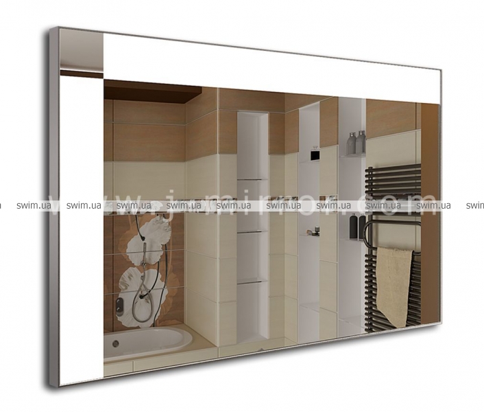 Зеркало со светодиодной подсветкой Mercede. Зеркало выполнено в стиле минимализма. Световой рисунок правильной геометрической формы равномерно светится. Современный дизайн подчеркивается алюминиевым анодированным профилем, защищающим края зеркала по периметру. Вы можете выбрать свой формат зеркала, а также левостороннюю или правостороннюю версию изделия.