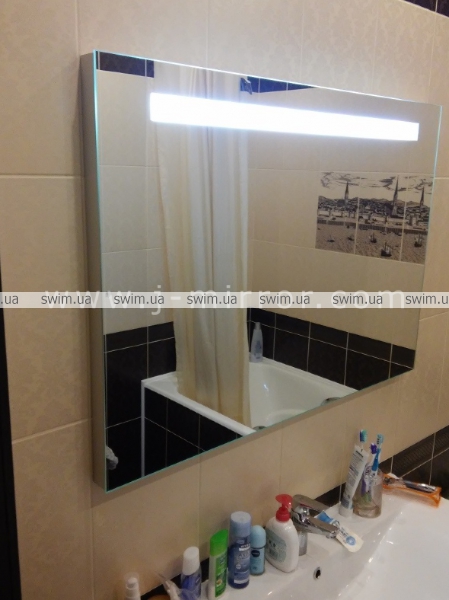 Зеркало для ванной с подсветкой mLt 008. Длина светового элемента – 800 мм. Современный дизайн в стиле хай-тек подчеркивается несущей рамой из анодированного алюминия по периметру зеркального полотна. Люминесцентная лампа T5, используемая в зеркале, имеет длительный срок службы и низкое энергопотребление. Толщина конструкции составляет 45 мм.