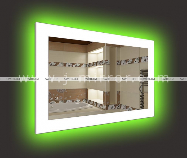- Дополнительная RGB подсветка исходит с обратной стороны зеркала, красиво освещая помещение мягким свечением