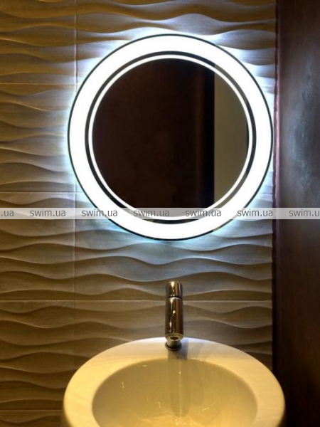 Зеркало со светодиодной подсветкой Perla. Стильное круглое зеркало с равномерно светящейся световой окружностью. Вы можете заказать изделие любого диаметра! Общая толщина зеркала не превышает 3 см, а в световой зоне составляет всего 24 мм.