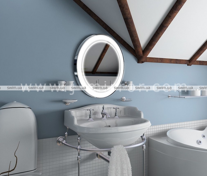 - Дополнительная белая или цветная контурная подсветка. Свечение исходит с обратной стороны зеркала по всему его периметру, создавая очень красивый эффект. В цветном варианте прилагается пульт управления, с помощью которого можно задать любой цвет подсветки либо изменение цвета по программе.