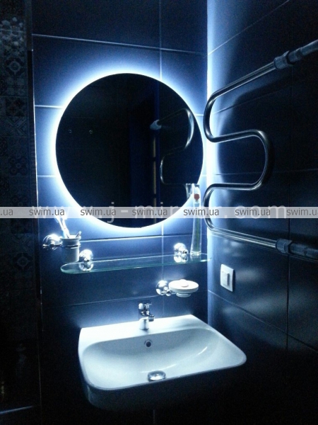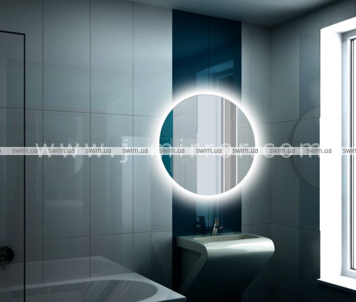 Зеркало Shape 01 с контурной подсветкой амбилайт. Подсветка исходит с обратной стороны зеркала, красиво освещая помещение мягким свечением.
