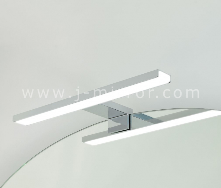 Зеркало Shape 02 c внешним LED светильником Consol 02, который выполнен из алюминия и хромированного ударопрочного пластика ABS. Размер светильника 300x108x40 мм. Мощность 5Вт, цветность 4000K.