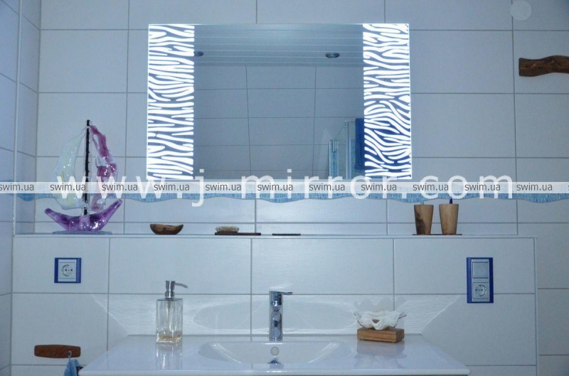 Зеркало со светодиодной подсветкой Unna. Запоминающийся дизайн этого зеркала создает особенную атмосферу домашнего уюта. Равномерный свет узора в стиле зебры красиво освещает помещение. Несущая алюминиевая рама позволяет крепить зеркало горизонтально или вертикально. Конструкция зеркала соответствует современным стандартам энергосбережения.
