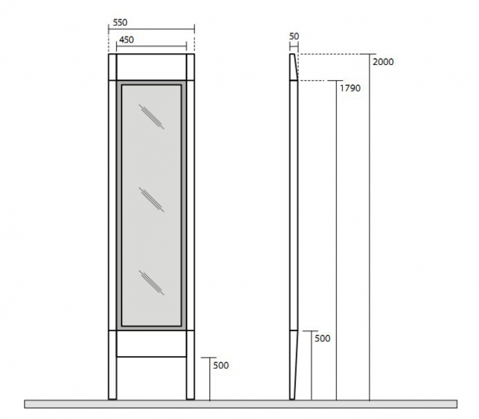 В коллекции представлено одно напольное зеркало длиной 55 см и высотой 200 см. Как и все остальные элементы, оно выпускается в цвете хемлок (арт. 918248) и тёмный ясень (арт. 918247).