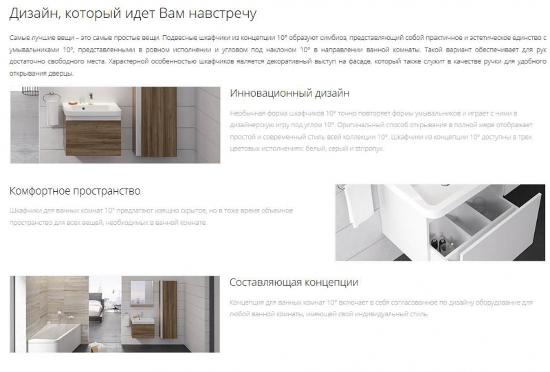 Зеркало, поворачивающееся на 10 ° в пространство, дает пользователю гораздо больше комфорта при использовании. Оно предназначено для размещения в углу, где оно создает практичный набор с угловым умывальником из тех же серий 10 °. Идеально подходит для других продуктов концепции 10 °.
