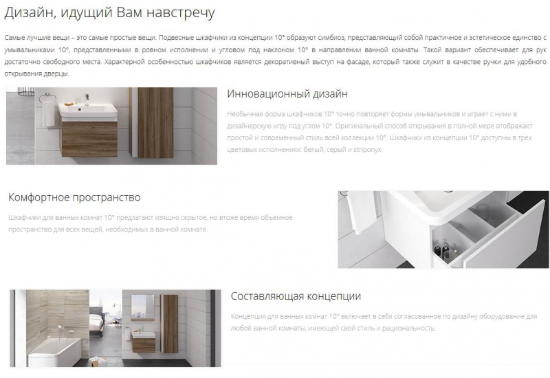 Для целостного решения и согласованного дизайна ванной комнаты рекомендуем зеркало комбинировать с остальными изделиями концепции 10° (умывальником 10°, шкафчиком под умывальник 10°) и другой продукцией RAVAK.