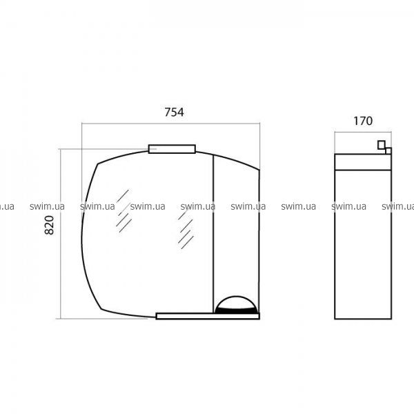- Зеркало "Глория" 75 см с подсветкой и пеналом справа