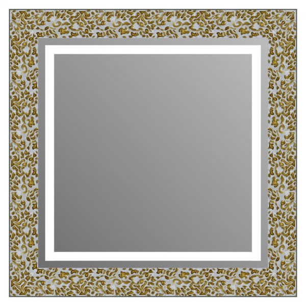 Зеркало в багетной раме J-mirror Julia 80x80 см белое золото с подсветкой