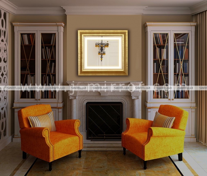Зеркало в багетной раме J-mirror Liana 80x80 см золото с подсветкой