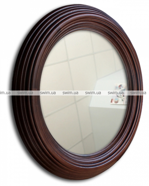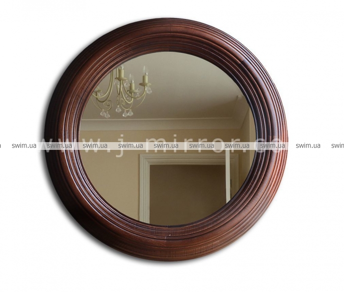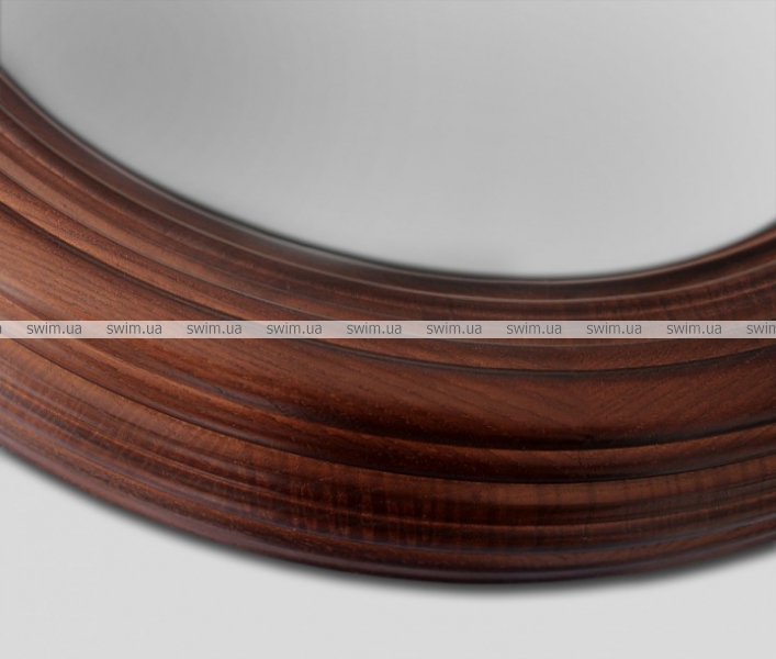 Зеркало Donna в раме из натурального дерева: круглое зеркало обрамлено в красивую массивную раму, выполненную из хорошо обработанной древесины ясеня. Рама ручной работы покрыта специальной тонирующей краской коричневого цвета. Покрытие рамы не скрывает структуру дерева, что подчеркивает натуральность используемого материала. Толщина рамы составляет 50 мм, ширина - 90 мм.