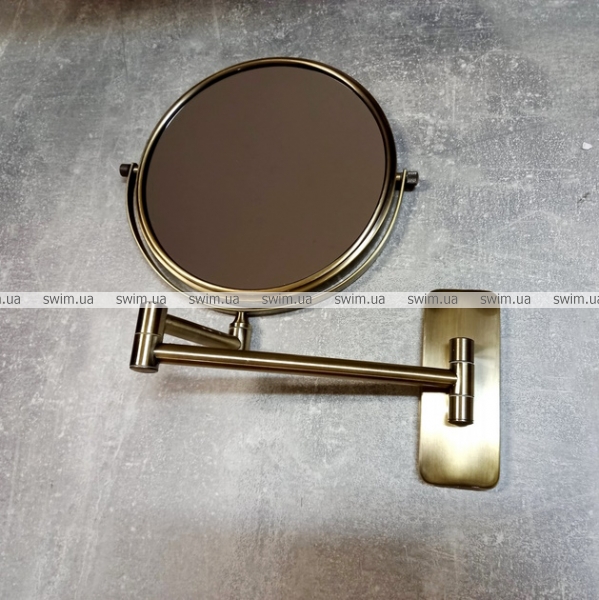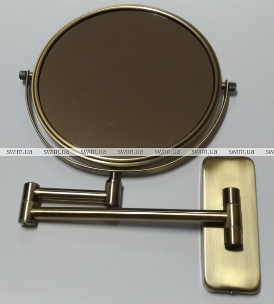 Даний товар являє собою двостороннє дзеркало, встановлене на шарнірній «ніжці», що складається, яка кріпиться до стіни. Ця функція дозволяє ставити дзеркало під будь-яким зручним для Вас кутом, а також дозволить зручно використовувати його в умовах обмеженого простору. Матеріал: метал. Покриття: антик. Довжина кронштейна 8,5 див. Діаметр дзеркала: 20см. Збільшення: *2