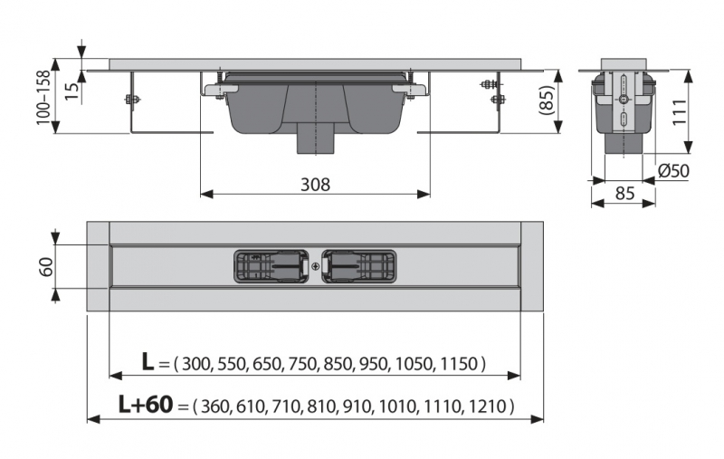 APZ1001-300 ВОДООТВОДЯЩИЙ ЖЕЛОБ С ПОРОГАМИ ДЛЯ ПЕРФОРИРОВАННОЙ РЕШЕТКИ, С ВЕРТИКАЛЬНЫМ СТОКОМ