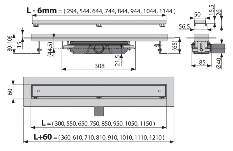 Желоб водоотводящий Alca Plast APZ107 Floor Low-300