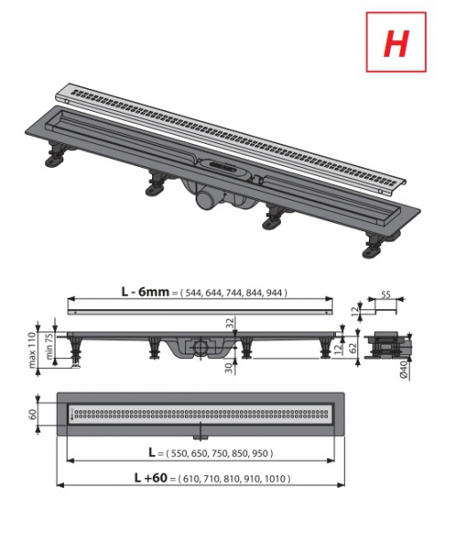 APZ9-850M Simple ВОДООТВОДЯЩИЙ ЖЕЛОБ С ПОРОГАМИ ДЛЯ ПЕРФОРИРОВАННОЙ РЕШЕТКИ