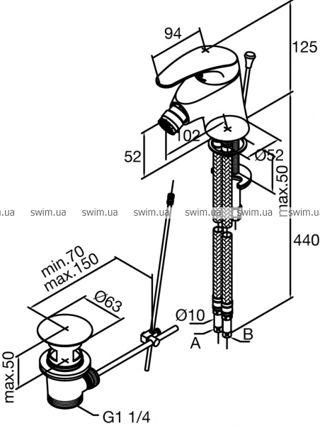 - Довжина підводки 440 мм