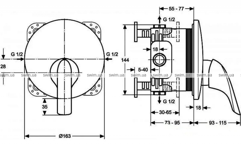 - Металева рукоятка з індикаторами гарячої/холодної води