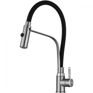 Представлена тут модель врізного, одноважільного кухонного змішувача MXIN0441 серії Командор виготовлена з високоякісної неіржавкої сталі, має високий поворотний, гнучкий вилив зі стандартним виносом 26 см чорного кольору обладнаний фіксатором, і призначена для встановлення на один отвір за допомогою гнучкого шлангового під'єднання під діаметр 1/2".
