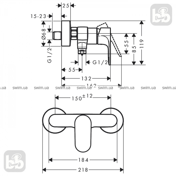 •відстань від центра: 150 ± 12 мм