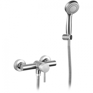 У комплекті зі змішувачем постачається душовий гарнітур у складі: однорежимної, круглої ручної лійки, настінного стаціонарного тримача для ручної лійки та душового шланга в металевому обплетенні з приєднанням 1/2" x 1/2".