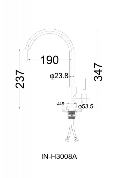 Особливістю моделі є її U-подібний поворотний вилив довжиною 190 мм і висотою 237 мм, що забезпечує максимальну зручність під час миття посуду чи набору води у великі ємності. Загальна висота змішувача — 347 мм — робить його ергономічним і практичним для щоденного використання. Одноважільний механізм із бічним регулятором дозволяє легко налаштувати потрібний напір і температуру, а продумана конструкція ідеально вписується в будь-який кухонний простір.