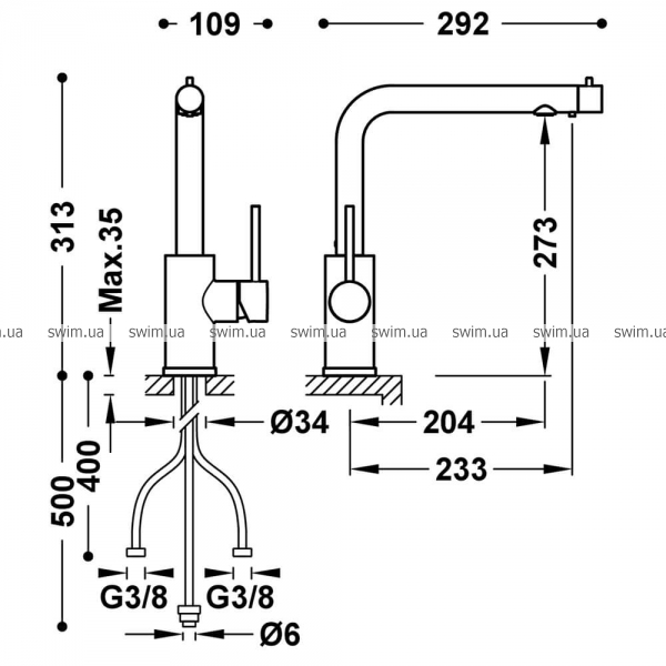 Змішувач для кухонної мийки Tres Kitchens 23045303NM