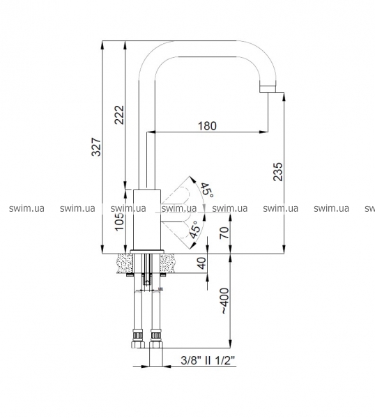 Ця модель призначена для миття на кухні. Досить великий розмір (висота – 327 мм) дозволяє з однаковим комфортом сполоснути руки, так і перемити гору посуду. Накладний монтаж підходить для більшості моделей раковин, а лаконічний дизайн підійде як для класичного, так і сучасного стилю інтер'єру. Але заради справедливості, його форма і глянсова поверхня більш ефектно виглядає в кухнях хай-тек або мінімалізм.