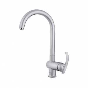 Представлений тут врізний, одноважільний кухонний змішувач SC 72007 серії Ramses від Emmevi, виготовлений з високоякісної латуні з покриттям матового хромованого кольору і має високий, поворотний вилив з виносом в 19 см. Модель встановлюється на один отвір. .