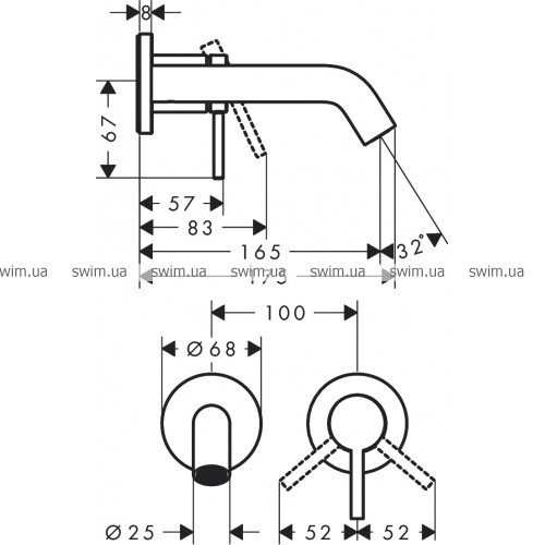- складається з: одноважільний змішувач для умивальника прихованого монтажу настінний, зливний гарнітур