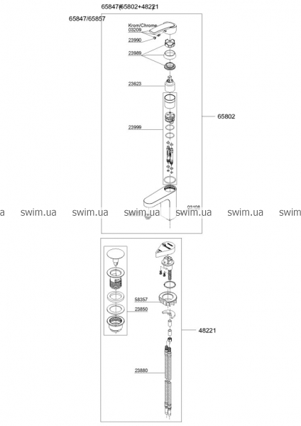 - Змішувач Damixa Slate 65847 для умивальника з донним клапаном