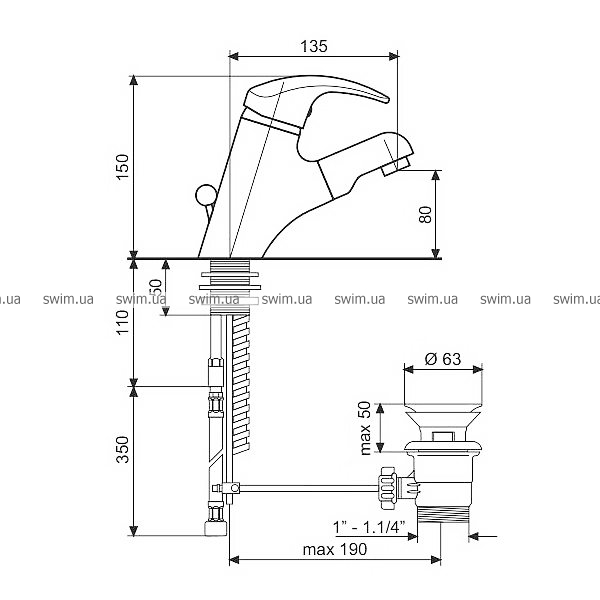 - Тип виливу - висувний