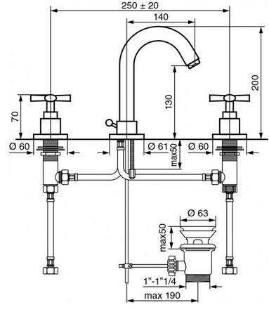 - Вид змішувача: двовентильний
