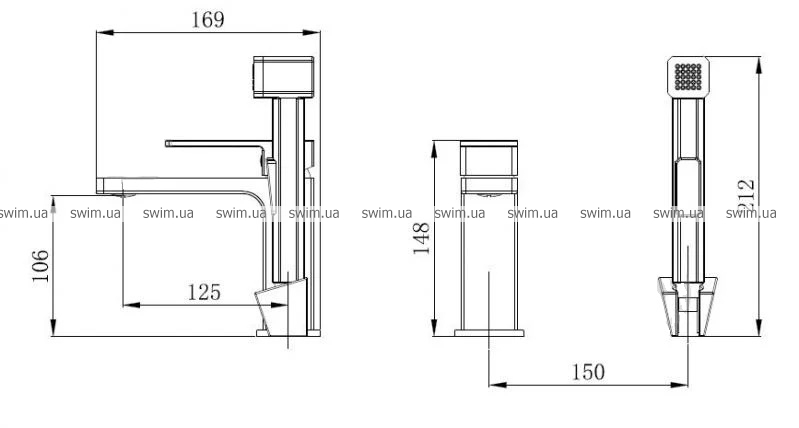 - Комплектація: Змішувач, Ручна лійка, Душовий шланг 120 см, Тримач лійки