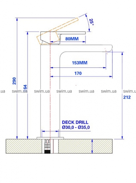 Врізний, одноважільний змішувач для мийки MXTP0464 серії Тренд виготовлений із високоякісної латуні з хромованим покриттям, обладнується стаціонарним високим виливом із виносом 17 см і встановлюється на один отвір із підведенням води за допомогою гнучкого шлангового під'єднання під діаметр 1/2".