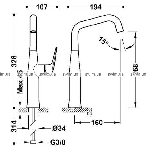 - Витрата води: 4.5 л/хв Висота струменя: 268 мм