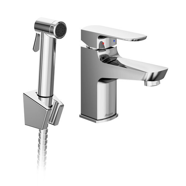 Змішувач для умивальника з гігієнічним душем та настінним тримачем Ravak Chrome BM 011.01