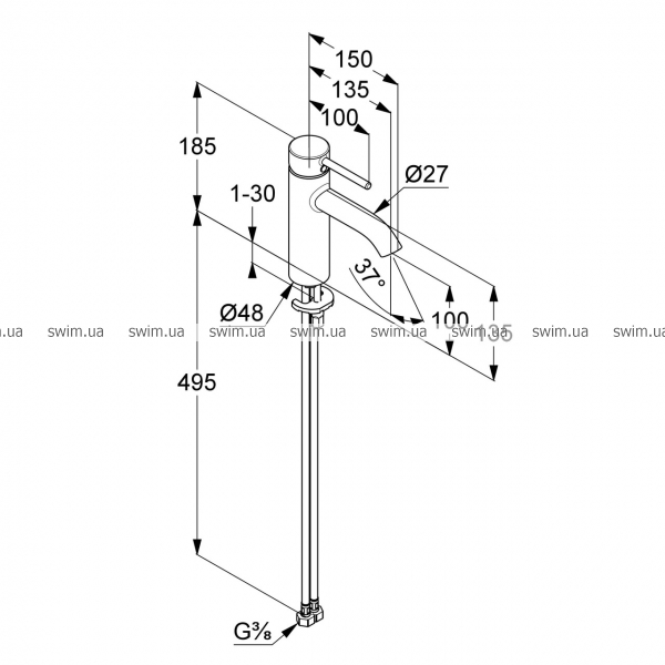 Змішувач для умивальника Kludi 100 DN 15 Bozz 382823976 чорний