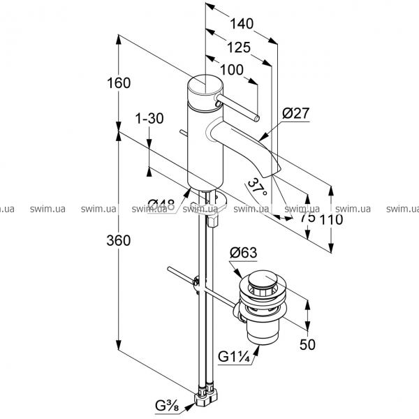 Змішувач для умивальника Kludi 75 DN 15 Bozz 382700576