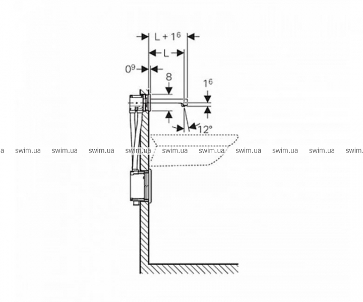 - Для вбудовування в монтажні елементи Geberit для умивальників та настінних змішувачів з функціональним блоком для прихованого монтажу
