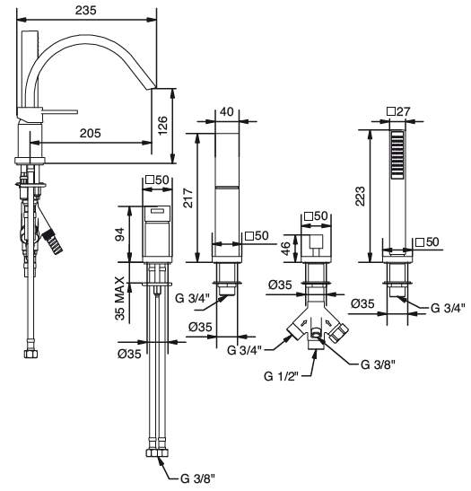 - одноважільний змішувач для ванни на 4 отвори