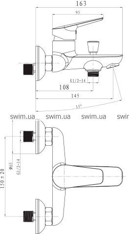 Високоякісний змішувач для ванни Mixxen Кенінг виготовлений за сучасними технологіями, відповідно до європейських вимог до якості, надійності та безпеки. Виконаний із високоякісної хромованої латуні, монтується вертикально на стіну, вода подається за допомогою одного важеля.