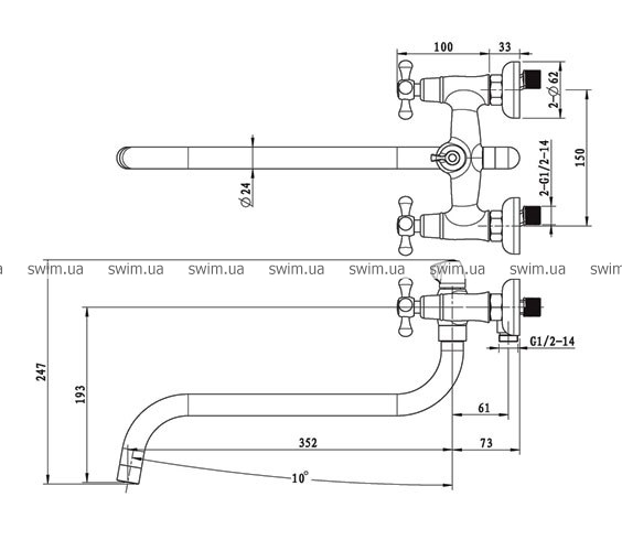 - Вид змішувача: двовентильний