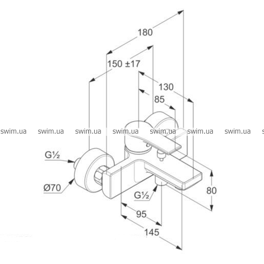 - одноважільний змішувач для ванни та душу DN 15