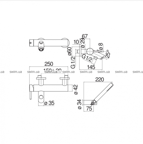 • Комплектація: лійка для ручного душу, душовий шланг, тримач для ручного душу.