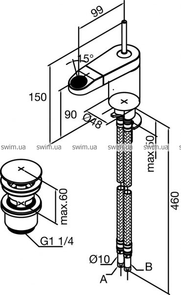 - Завдяки поворотному виливу підходить як для раковини так і для біде