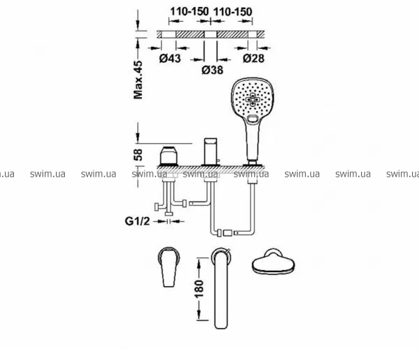 - Кран зі зливом та знімний душ з антивапняним покриттям