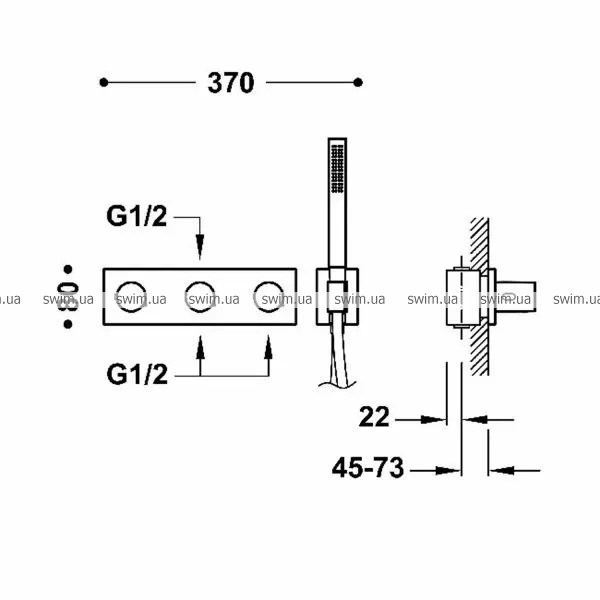 - прихований термостатичний корпус для горизонтальної установки в комплекті