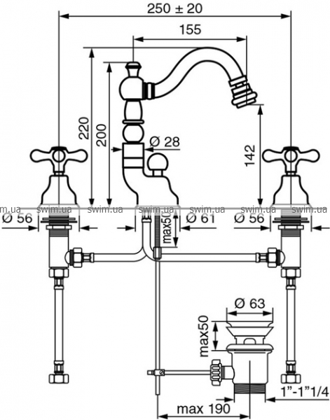 Представлений тут двовентельний врізний змішувач для біде з донним клапаном Deco CR12644 від Emmevi виготовлений з високоякісної латуні з покриттям, має вилив з аератором і виносом в 15.5 см. Модель встановлюється на три отвори та поставляється без шлангів для підведення води (докуповуються окремо).